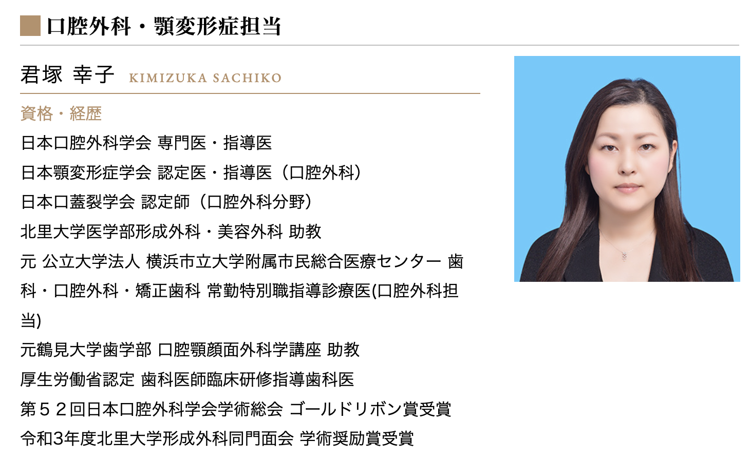当院で手術(口腔外科)を担当する君塚(きみづか)医師は、日本顎変形症学会の指導医・認定医(口腔外科)です。